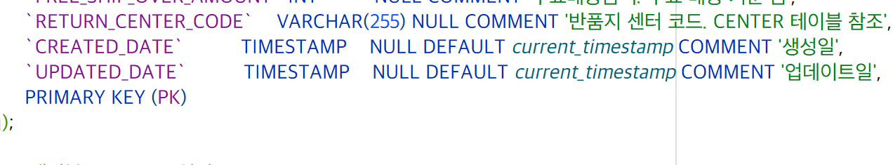 - 위 처럼 한 테이블내에서 시간값에 default 값을 추가해주는 경우 기본값 설정을 할 수 없다는 문구가 발생함.