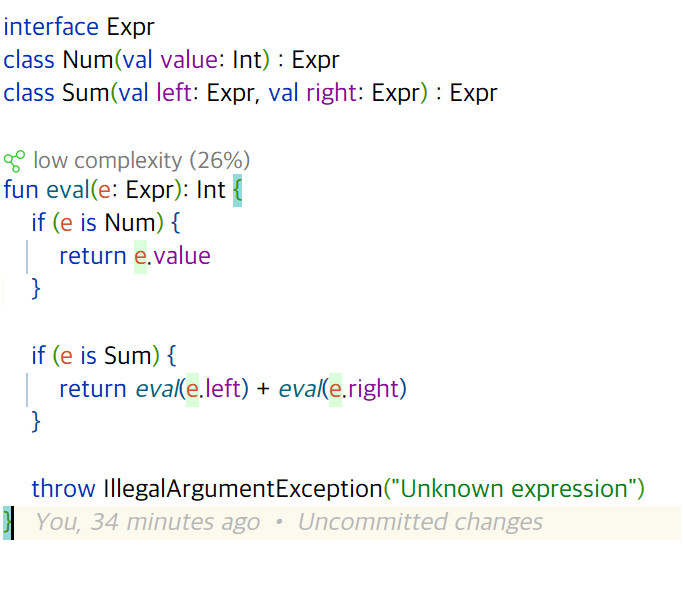 - 해당 위치의 객체변수가 스마트캐스트 기능으로 Num 타입으로 캐스팅되었다는 것을 알 수 있다.