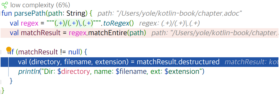 val (directory, filename, extension) = matchResult.destructured