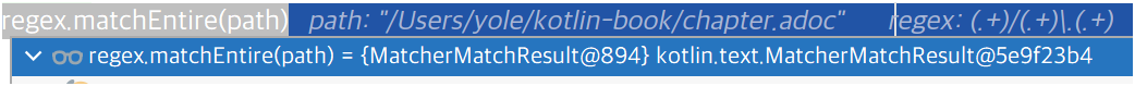 Dir: /Users/yole/kotlin-book, name: chapter, ext: adoc(.+)- 하나의 그룹을 의미