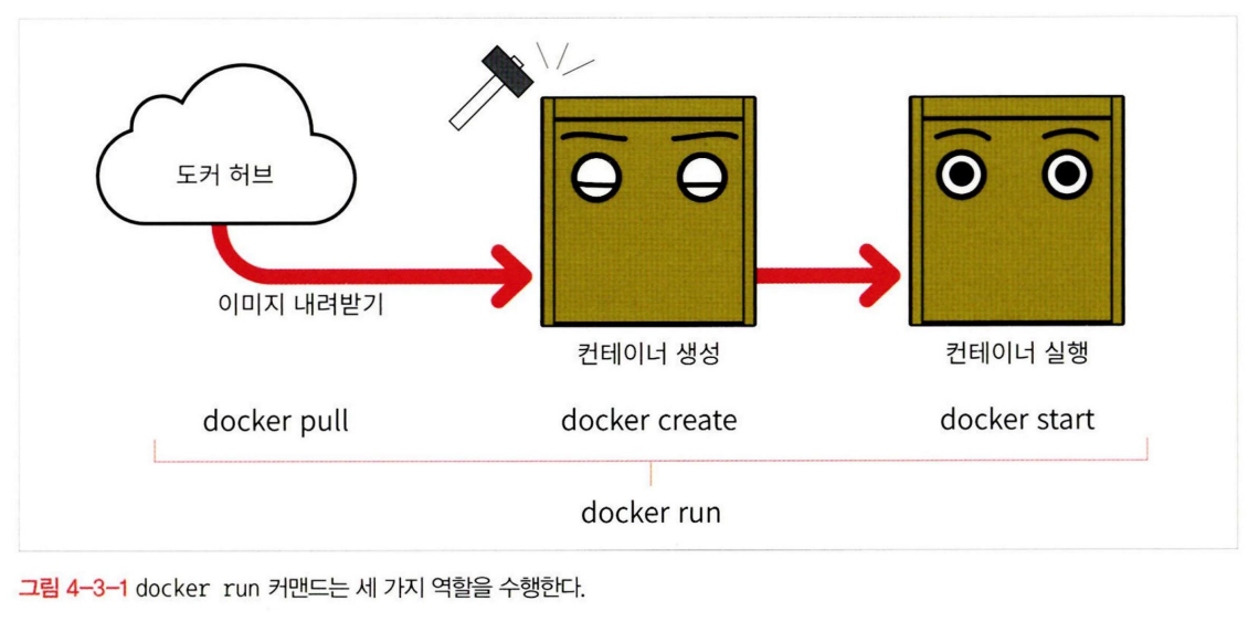 - 도커허브 → 이미지 내려받기 → 컨테이너 생성 → 컨테이너 실행 → 컨테이너 정지 → 컨테이너 삭제