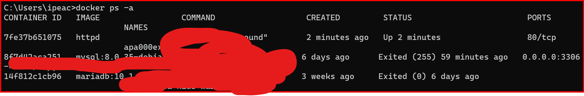 - 실행 중인 컨테이너는 삭제할 수 없으므로 먼저