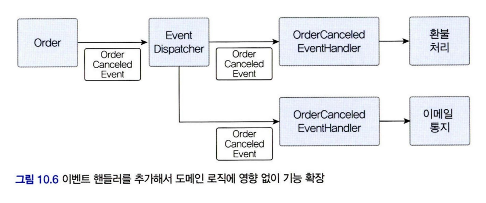 - 주문 취소 이벤트를 발생시켜 이벤트 핸들러가 환불 처리를 담당하도록 할 수 있음