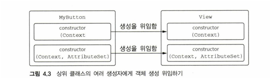 `class MyButton : View { constructor (ctx: Context) : this(ctx,MY_STYLE) { // ... } constructor (ctx: Context, attr: AttributeSet) : super(ctx, attr) { // ... } }