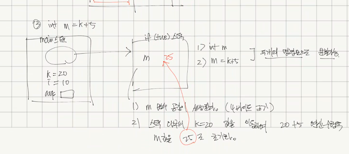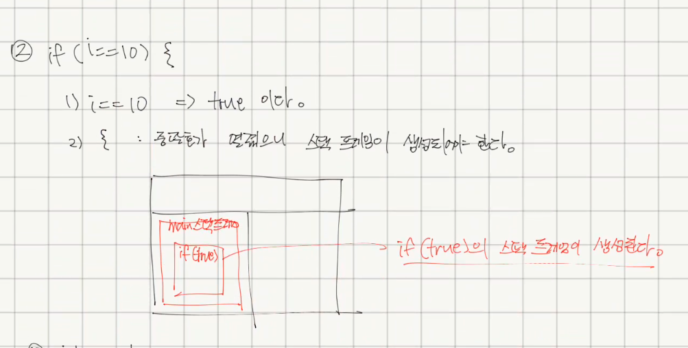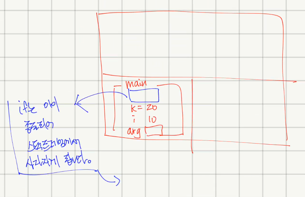 - 닫는 중괄호는 if 블록 스택 영역을 스택 영역에서 제거