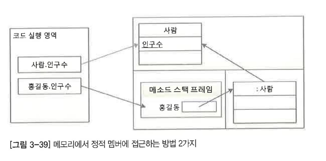 객체참조변수명.정적멤버로 접근하게 된다면객체참조변수가 가리키는 힙영역에 있는